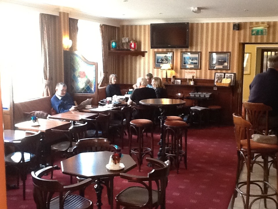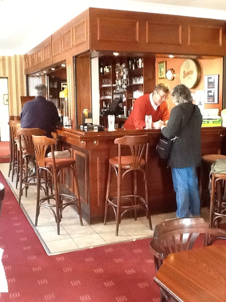 Dinner at the other hotel is surprising, in that there is a varied menu to choose from, all offered as part of the package, so after a brief nap and a pint at Casey’s, we are all treated to a huge meal, offering salmon, beef roast, steak, fish and chips, and etcetera. The dinner is delicious, served to individual order by a staff of three for 44 diners.