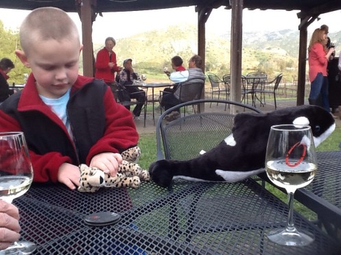 favorite local vineyard and winery is Orfila, close by the Safari Park, and we have a glass of wine to celebrate two days of hard parking, joined by Baron’s acquisitions, a plush Orca and baby from SeaWorld and a cheetah from the Safari Park.