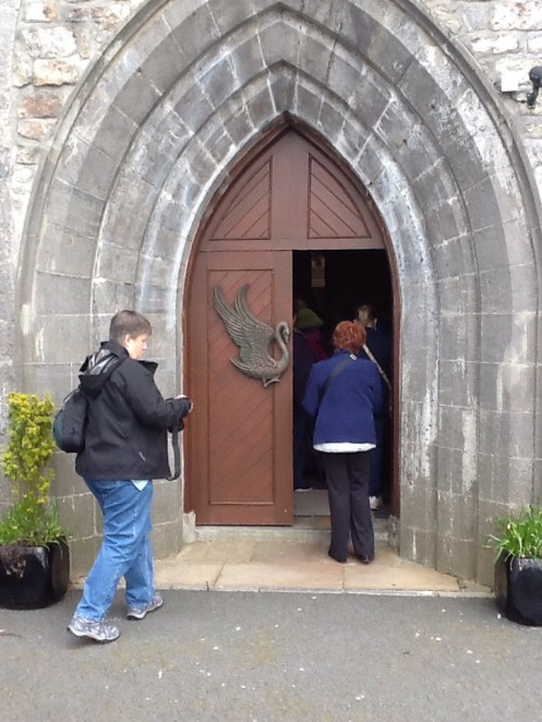 This is the church in Sligo where Yeats is buried. We are met by a local tour guide, Martin Enright, whom James has recently met, and he gives a short presentation on Yeats because our time is limited, but he is definitely up on his stuff and presents well. He’ll be featured on future tours, and he recommends some kids from the local area who are bang-up traditional musicians. Athough there has been no concert planned for this night, the kids are arranged, because the schedules on these tours tend to be flexible.