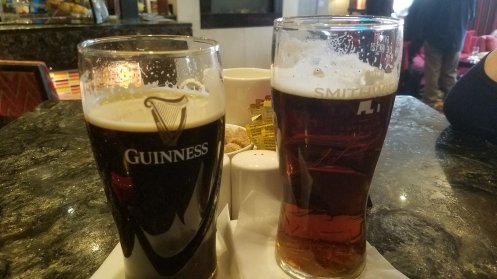Many stores are closed, but we found a Tesco and bought a couple of SIM cards for our primitive Ireland cell phones. But an hour and a half search and hike on concrete is a little much for us after 19 hours of travel. So it’s back to the hotel to wait for our room to be ready. And of course: