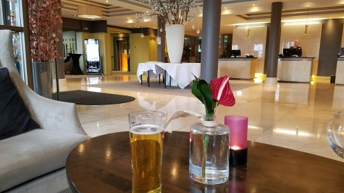 Before dinner, a pint of Orchard Thieves Irish cider in the hotel lobby.